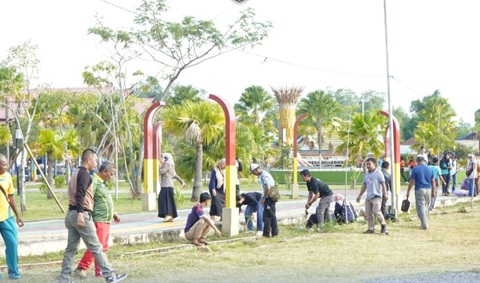 Wakil Bupati Tana Tidung melakukan peninjauan langsung terhadap pelaksanaan kerja bakti serentak dalam rangka menyukseskan Gerakan Indonesia ASRI (Aman, Sehat, Resik, Indah) pada Jum’at, 17/04/2026 di RTH Djoesoef Abdullah.