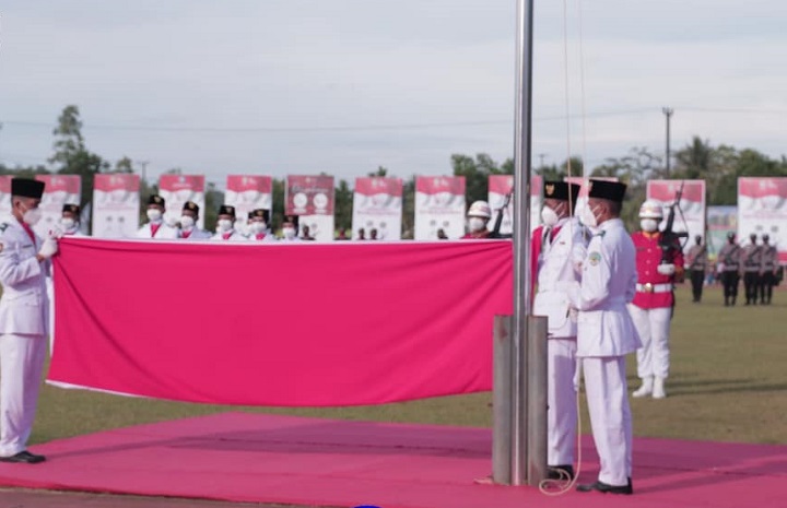 Upacara Penurun Bendera Merah Putih pada Peringatan HUT ke 76 Republik Indonesia di Kabupaten Tana Tidung berjalan Lancar dan Aman serta Menerapkan Protokol Kesehatan Covid 19.